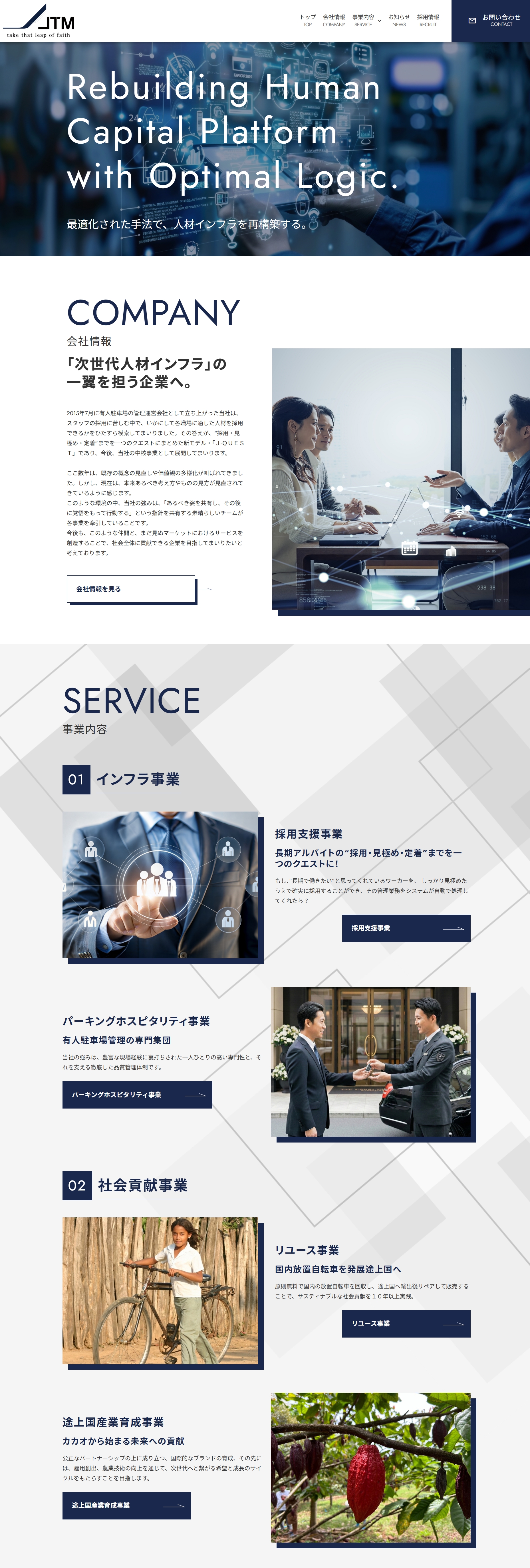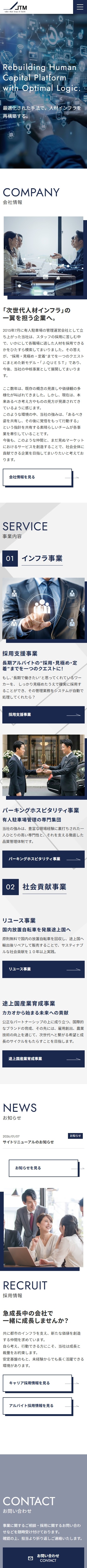 記事公開日 2026/01/29 日本タウンマネジメント株式会社様 制作実績コーポレートサイト採用サイト Tweet 日本タウンマネジメント株式会社 依頼内容 webサイト制作 Website https://www.j-tm.jp/ 業務内容 警備業・一般労働者派遣事業・有料職業紹介事業 Tweet