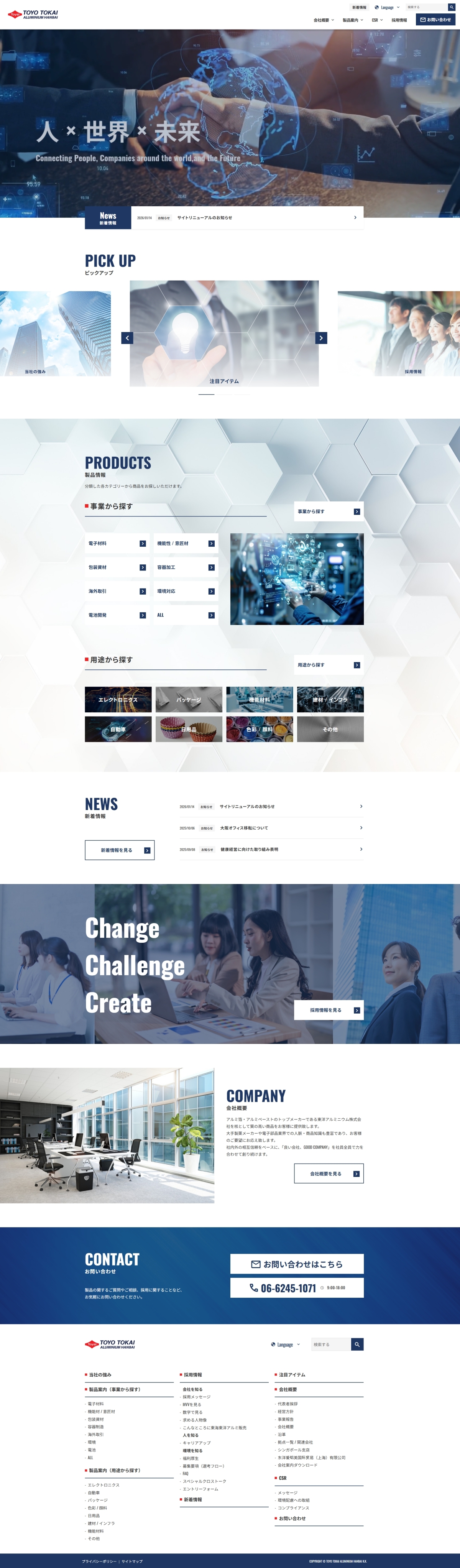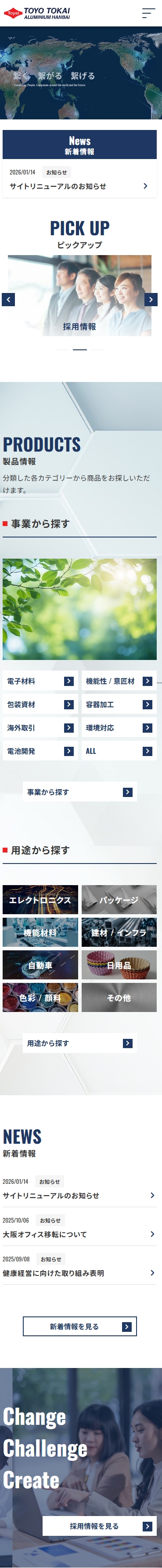 記事公開日 2026/02/12 東海東洋アルミ販売株式会社様 制作実績コーポレートサイト Tweet 東海東洋アルミ販売株式会社 依頼内容 webサイト制作 Website https://www.alumihanbai.co.jp/ 業務内容 非鉄金属並びにその製品の販売、加工及び貿易 Tweet